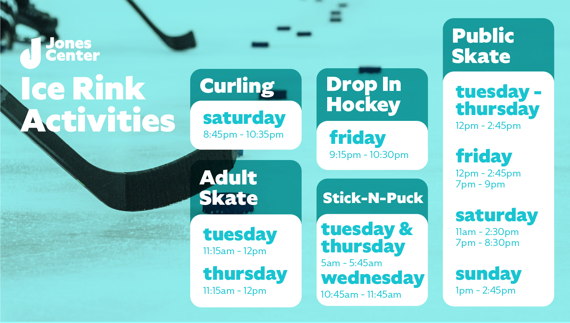 Scroll down to see the public schedule times for our Gymnasium, Ice Rink, Pools and Fitness Center.